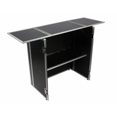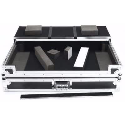 DJ FLIGHT CASE WITH LAPTOP TABLE. Crafted from 9 mm vinyl laminated plywood, sturdy aluminium profiles and heavy duty butterfly latches, it provides you with secure transport and workstation in one. Thanks to the integrated gliding laptop platform and the convenient cable access port, the setup is ready for action in no time at all. FEATURES Holds a Pioneer DDJ-REV1and Laptop Incl. gliding laptop platform (removable) Heavy duty construction of 9 mm vinyl laminated plywood Solid aluminium profiles and spring loaded latches Secure stacking due to stackable ball corners Detachable front cover/panel Full padded interior keeps controller well-protected Convenient cable access port 2 fixing straps hold laptop during transportation