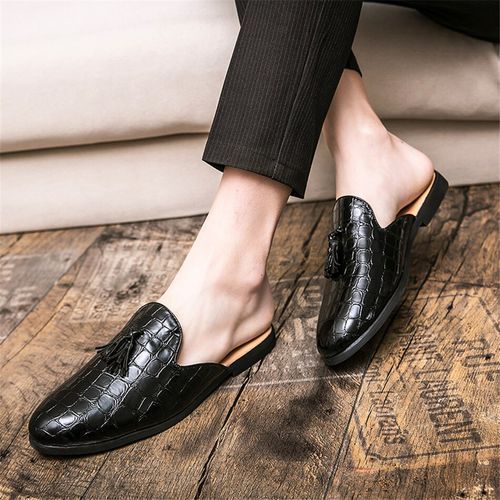 Bespoke Mens Fashion Sugar-Face Leather Retro Half Shoes _Blackmade up of genuine quality leather and a strong sole, built with meticulous care to fit your style and keeps your feet comfortable at all times. Perfect for casual and corporate occasions. Easy wear but still indicative of class. Made from quality leather material sourced from top notch sources and designed to withstand any terrain or condition