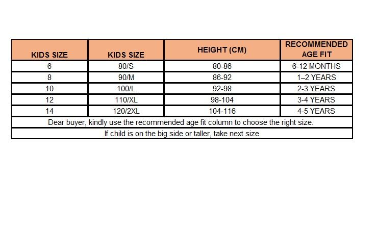 We provide a ruler chart with age as a reference, but age is not the only reference, but also refer to the individual figure, weight, chest circumference, waist circumference and other physical data. This is a great way to help you choose the right item/size.