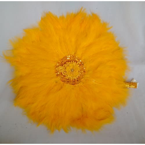 Buy Alexie's -Feathers Bridal Hand Fan - Golden Yellow With Gold Details in Nigeria