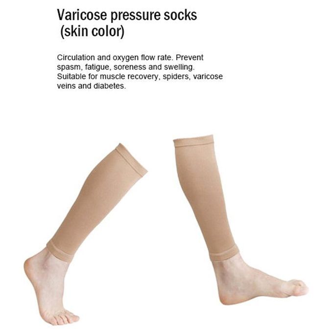 Spe ifi ations: Produ t ategory : Pressure So ks Ingredients: Polyester (Polyester) Fun tion: shape, anti-fri tion, breathable Style : Sports Suitable for seasons: winter, spring, summer, autumn Pattern: plain Thi kness: medium Tube height: long tube Size: one size olor: Bla k,Skin(optional)
