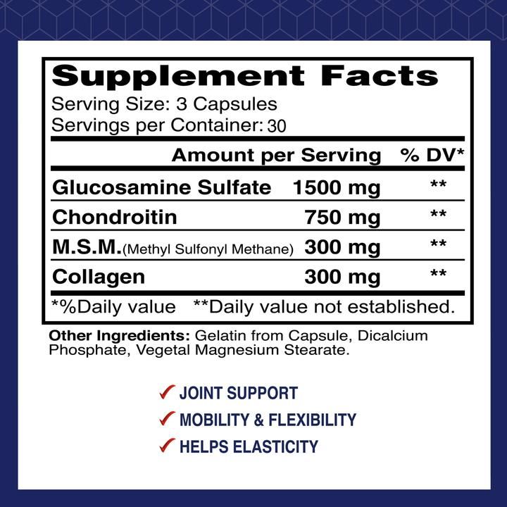 Alflexil Premium Glucosamine & Chondroitin Nutritional Supplement - Healthy Joint, Bone & Knee Support - Rich In MSM & Collagen - Organic natural Ingredients - Made In USA