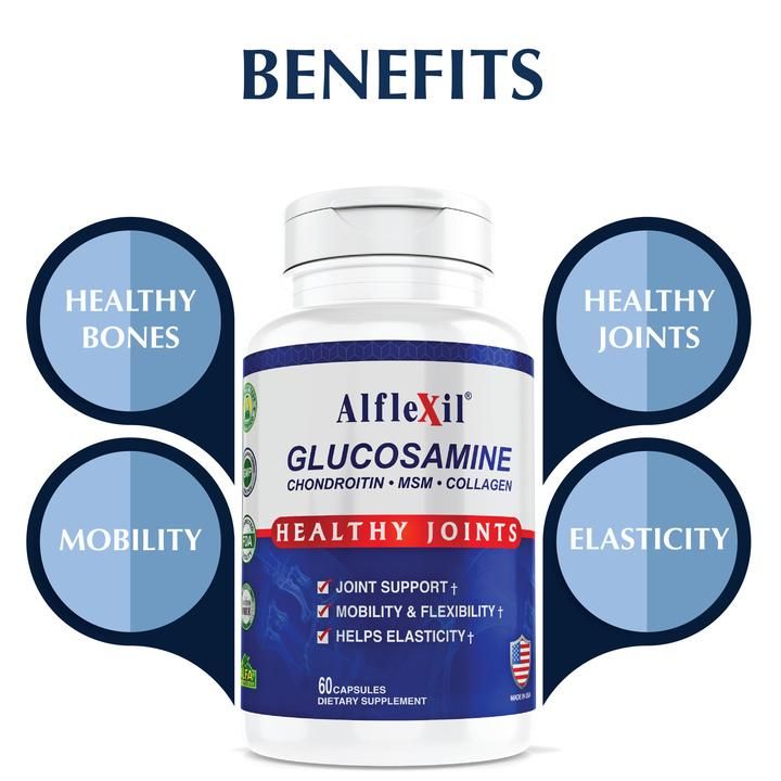 Alflexil provides glucosamine, chondroitin, collagen, and Hyaluronic Acid. These substances are important parts of joints and other organs in the body.
