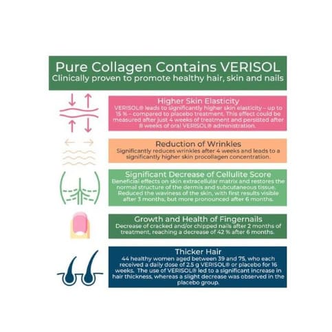 Improves dermatological health, bones, sleep schedule, and many more.BENEFITSProven Skin, Hair & Nail Anti-Aging