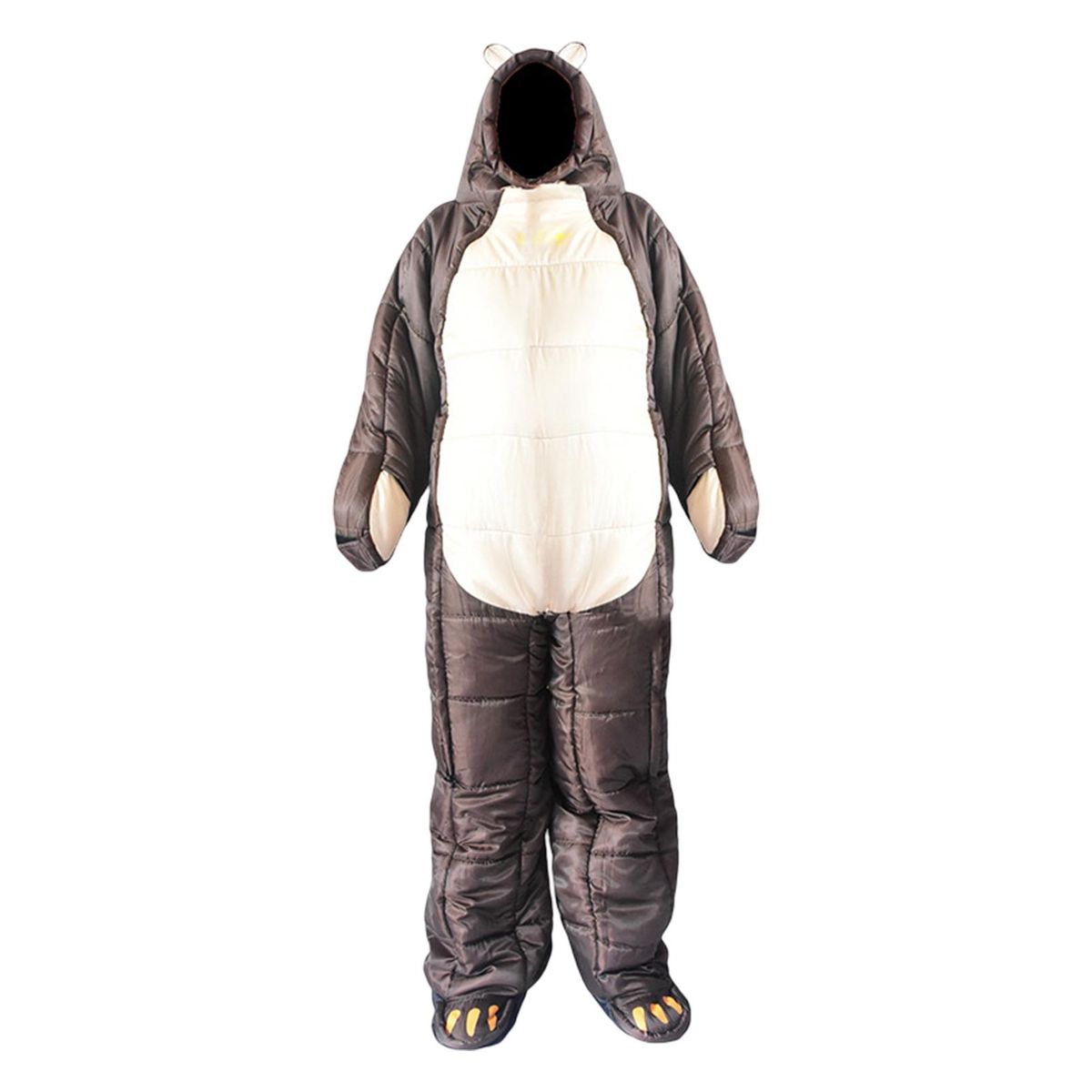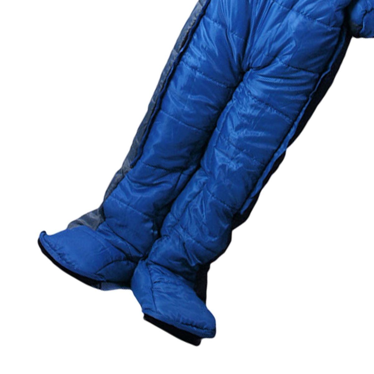 With a wearable design, this sleeping bag has a staggered laminated design for easy access to things, multiple zipper design to make it easy to put on and take off, and a toe opening for easy walking.