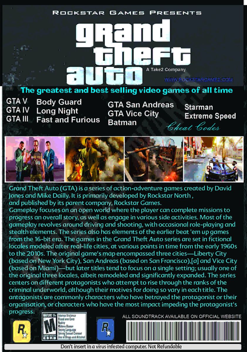GTA 5, 4, 3, San Andreas, Vice City, and more inside made specifically for all PC types and graphic size to suite your mafia spirit. |