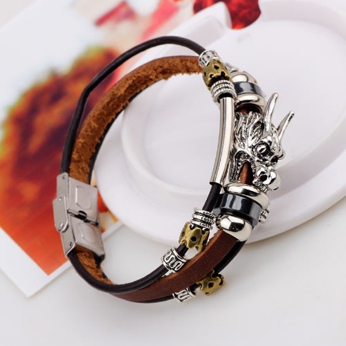 Buy Alloy Silver Tibetan Dragon Bracelet Multi-layers Leather Bangle in Nigeria