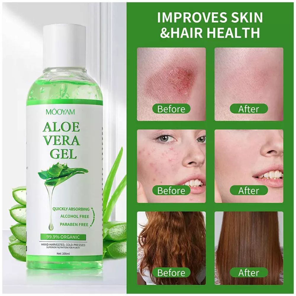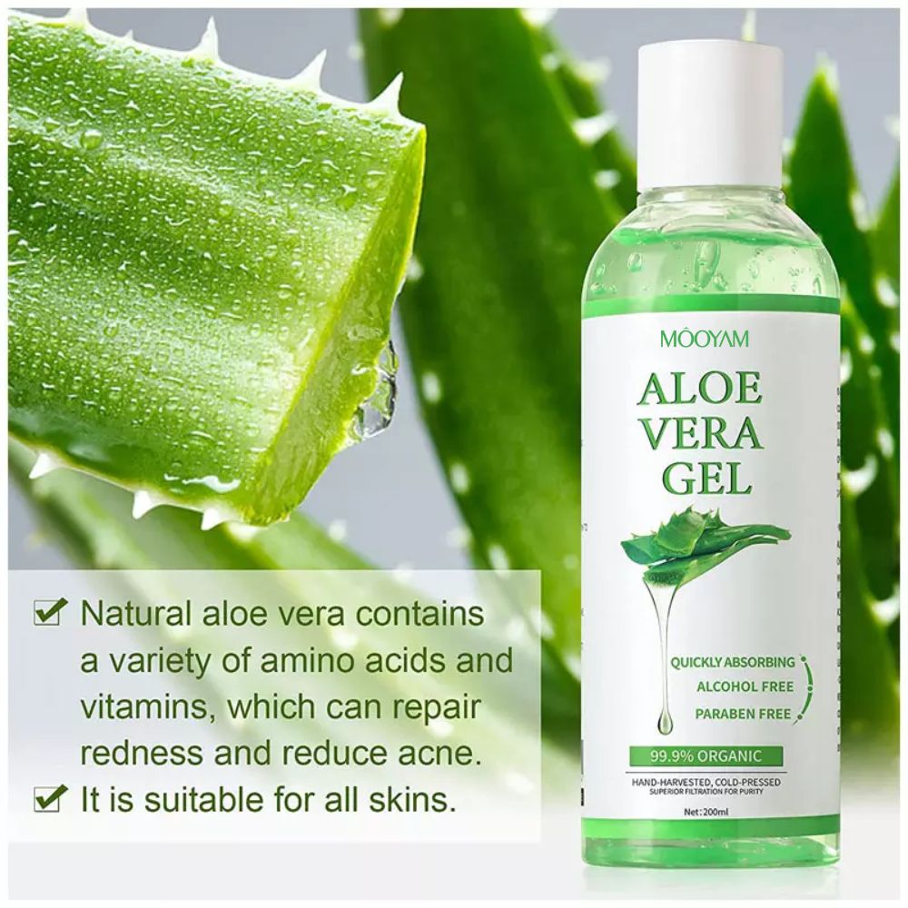 DESCRIPTION:Mooyam Aloe Vera Gel is one kind of gel, Organically grown, Cold pressed, Hand Harvested Material, that consists of 99.9 organic, Paraben free, Sulfate free. The remaining one quater of one percent are eco friendly ingredients used to prolong shelf life to 2-years without refrigeration.
