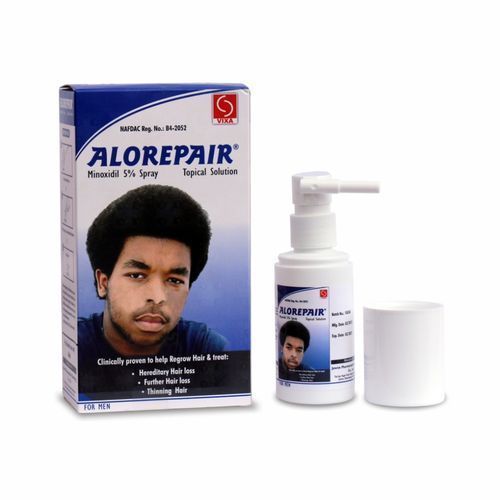 ALOREPAIR is a topical solution for the treatment of alopecia adrogenetica (male pattern baldness of the vertex of the scalp and in females as diffuse hair loss or thinning of the frontoparietal areas). It promotes hair growth and the epithelium of hair bursa. The response is better when the patients use ALOREPAIR directly after hair loss. At least four months of twice-daily applications are generally required before evidence of hair growth can be expected. If a patient responds to treatment, he will need to continue using ALOREPAIR to maintain hair growth. In the treatment of alopecia androgenetica (male-pattern baldness) 1ml of a 2% or 5% solution of ALOREPAIR is applied twice daily to the scalp. The 5% solution is not recommended for women.