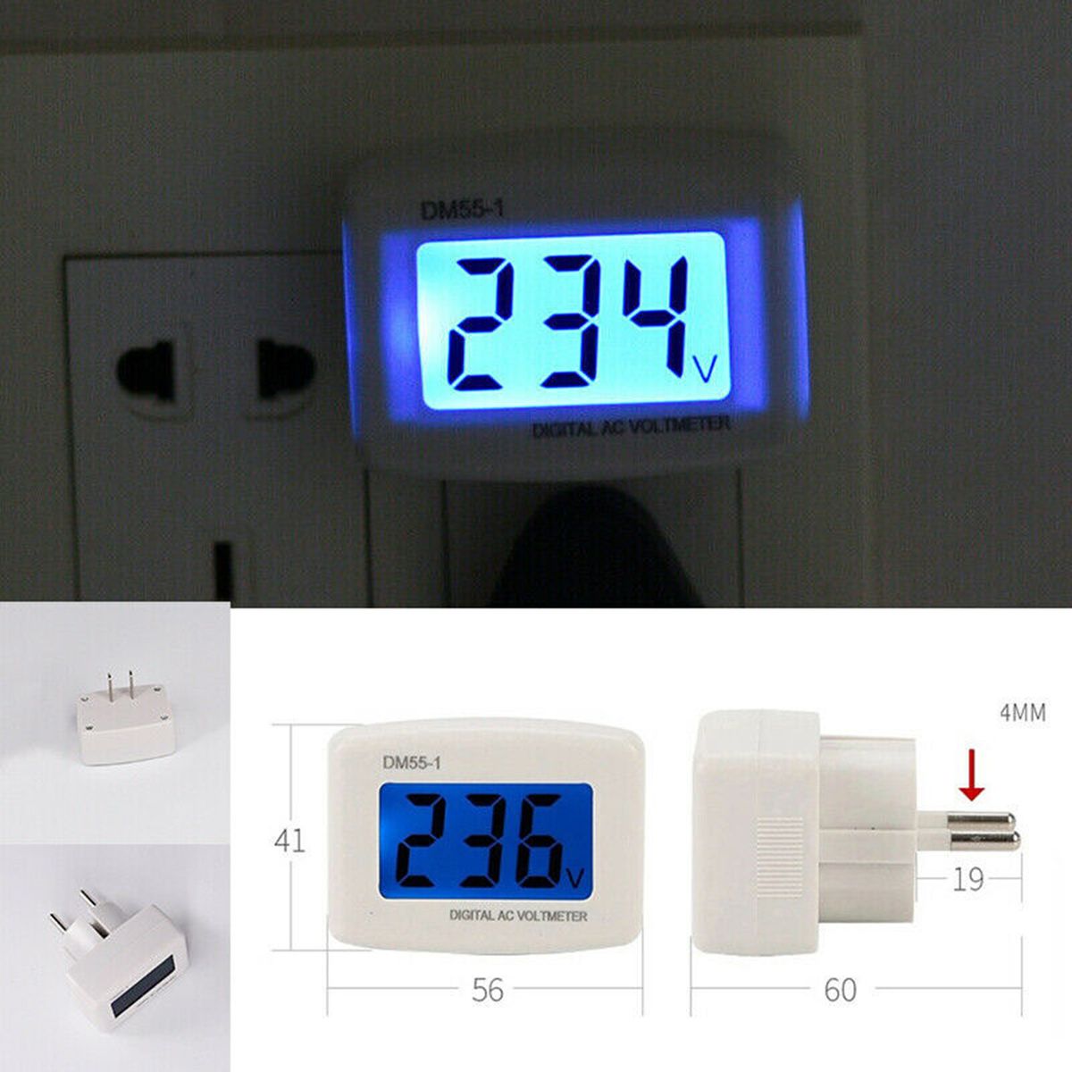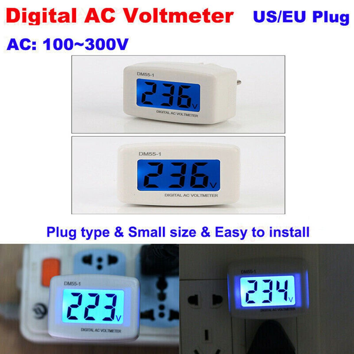 US or EU type plugs are optional, widely used in alternating current 100-300V detection.