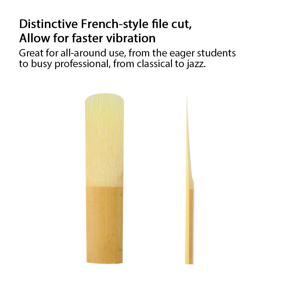 Features:Alto saxophone traditional reeds, strength 1.5 or strength 2.5 or strength 3.0 for option, 10pcs/box.