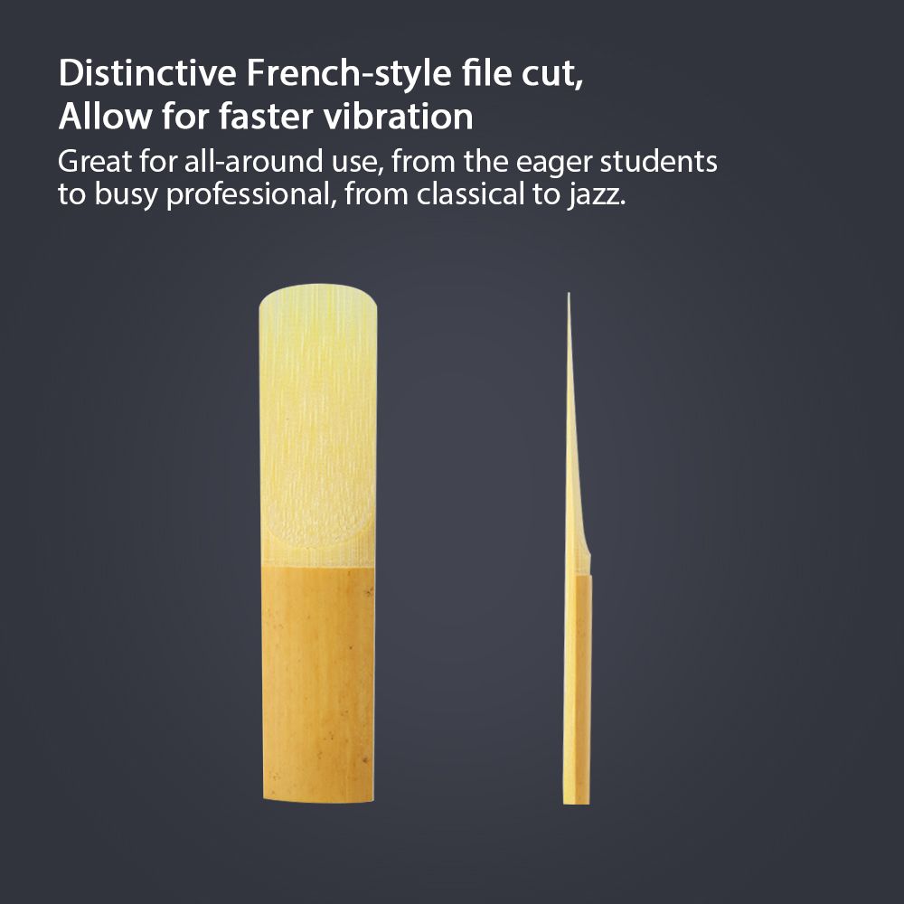Features:Alto saxophone traditional reeds, strength 1.5 or strength 2.5 or strength 3.0 for option, 10pcs/box.