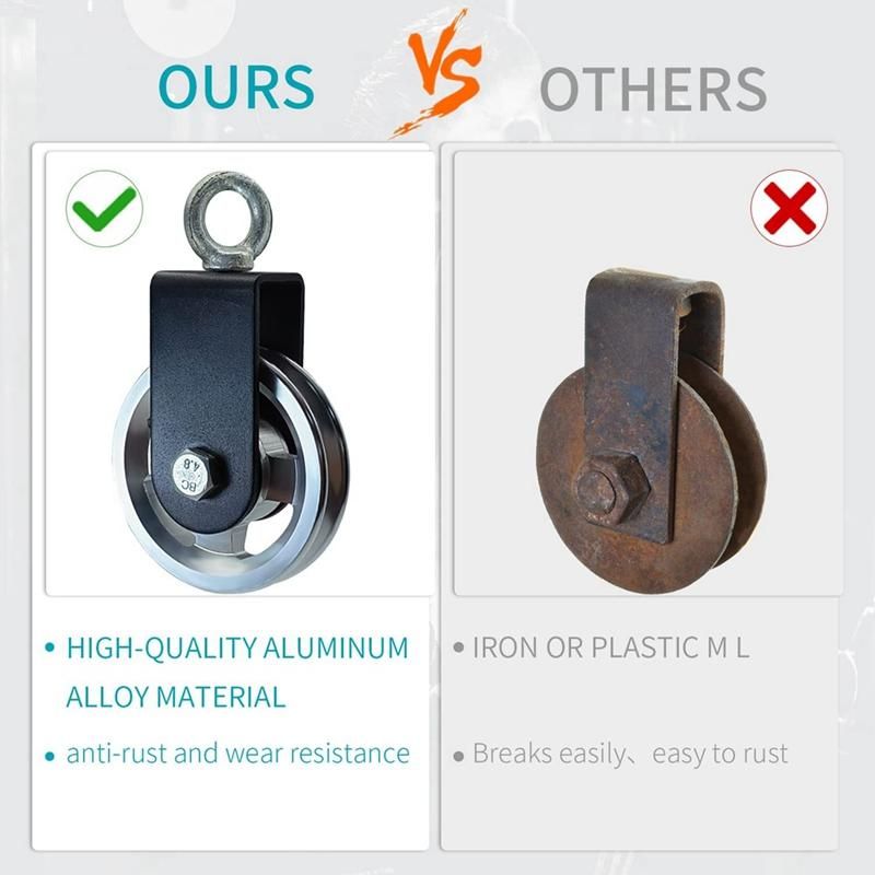 The Pulley is widely used for wire rope traction, home gym, DIY Attachment for home gym pulley system, lifting blocks, hoists, ladder lift, gym equipment, clothesline. It can save your precious time and labor, making you enjoy more . Easy to install and durable in use. Material: Aluminum
