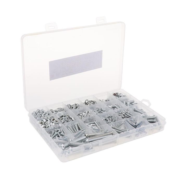 All of screws nuts and washers will be packed in a sturdy convenient case, each of different type are separated, is organized to you, and easy to sort, it can be use for a storage box