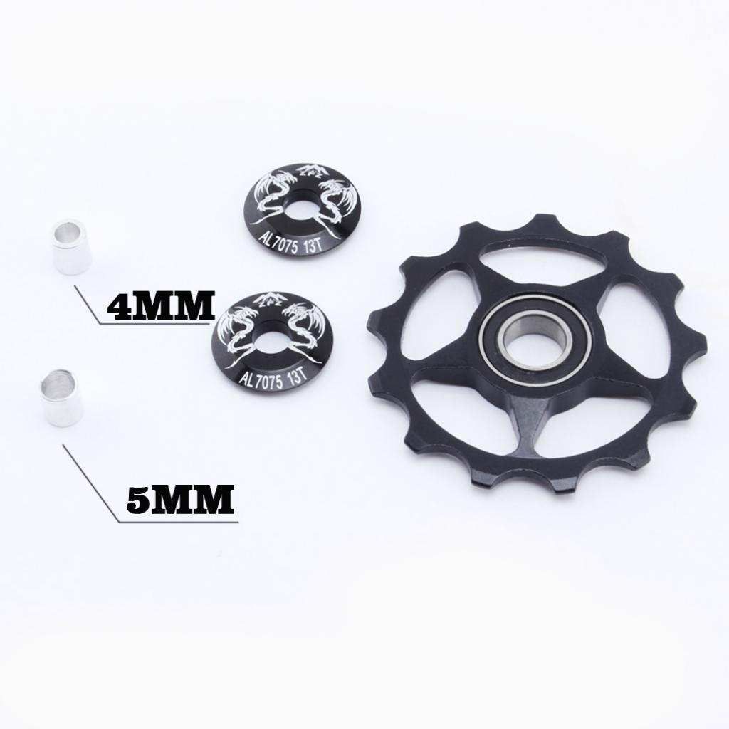Made of aluminum alloy, lightweight and durable.Machined bicycle jockey wheel with fully sealed bearing for center bolt derailleurs.Apply for most rear derailleur of 13 teeth in the market.Can replaced the plastic guide to aluminum alloy guide wheel,it will higher grade, bearing lubrication.A rear derailleur needs 2 pulley wheels.Necessary accessories for your bicycle.