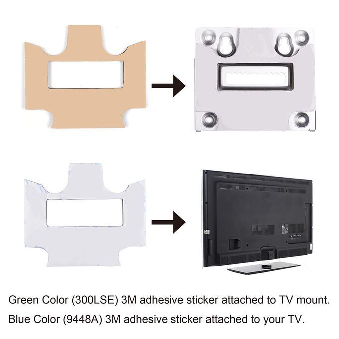 Stick to TV Back: Using hook to the bracket and use double-sided adhesive tape to Stick on TV.