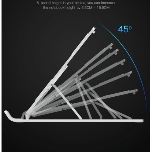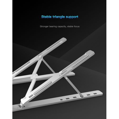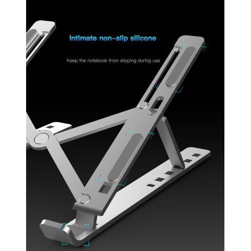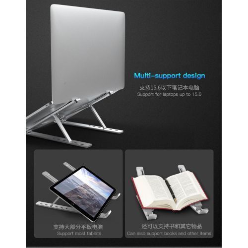 [Broad Compatibility]Supports all laptops, up to 15.6-inch, compatible with MacBook Air / Pro, Google Pixelbook, Dell XPS, , ASUS, Lenovo ThinkPad, Acer, Chromebook, Samsung, Tablet and iPad.[6-Layer Ergonomic Design] There are 6 height options to fix the posture and reduce back pain, neck stiffness and wrist aches.[Portable and Convenient Installation]Weighing 0.3 kg, can be quickly folded into a thin size. The carry-on bag is easy to carry around. It only takes 1 second to open and close.[Stability and Durability]Made of high-quality aluminum alloy to make the laptop lifting board more sturdy; anti-slip pads can keep the laptop lifting board stable and protect the device/desktop surface after placement.[Ventilation and Heat Dissipation]-Good ventilation, can also be used as a heat sink to help heat dissipation.