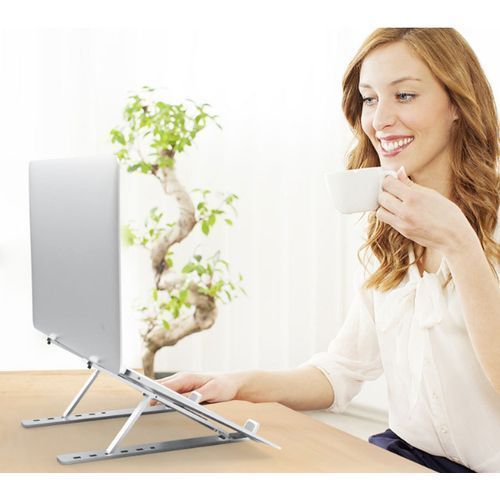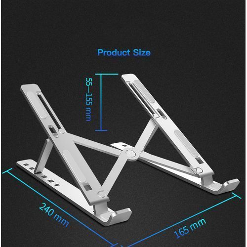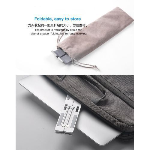 [Broad Compatibility]Supports all laptops, up to 15.6-inch, compatible with MacBook Air / Pro, Google Pixelbook, Dell XPS, ASUS, Lenovo ThinkPad, Acer, Chromebook, Samsung, Tablet and iPad.[6-Layer Ergonomic Design] There are 6 height options to fix the posture and reduce back pain, neck stiffness and wrist aches.[Portable and Convenient Installation]Weighing 0.3 kg, can be quickly folded into a thin size. The carry-on bag is easy to carry around. It only takes 1 second to open and close.[Stability and Durability]Made of high-quality aluminum alloy to make the laptop lifting board more sturdy; anti-slip pads can keep the laptop lifting board stable and protect the device/desktop surface after placement.[Ventilation and Heat Dissipation]-Good ventilation, can also be used as a heat sink to help heat dissipation.