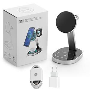 - 3合1 Mag-Safe充电站*1、20W QC3.0适配器*1、3.3ft/1m USB Type C充电线*1、用户手册*1。我们还提供12个月