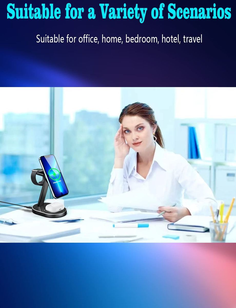 - 【您将获得什么】- 3合1 Mag-Safe充电站*1、20W QC3.0适配器*1、3.3ft/1m USB Type C充电线*1、用户手册*1。我们还提供12个月保修和24小时专业销售后期服务,如果您需要任何帮助,请随时联系我们