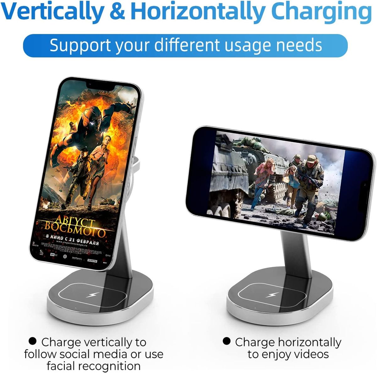 【解放您的双手】-磁性充充电器可以在任何方向为您的iPhone 14/13/12系列充电。只需要将手机放在上面,它就会自动对齐手机充电区,以提供超快速充电和锚固的磁性连接。无需担心浏览社交流媒体、观看视频或发送消息等