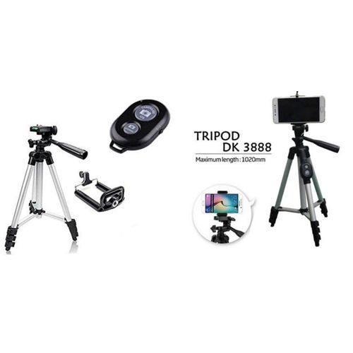 Aluminium Alloy Dk 3888 Portable & Foldable Camera Mobile Tripod With Bluetooth Wireless Remote Shutter Photo Clicker Controler Compatible With Xiaomi, Lenovo, Apple, Samsung, Vivo, Oppo, Gionee, All Smartphones.