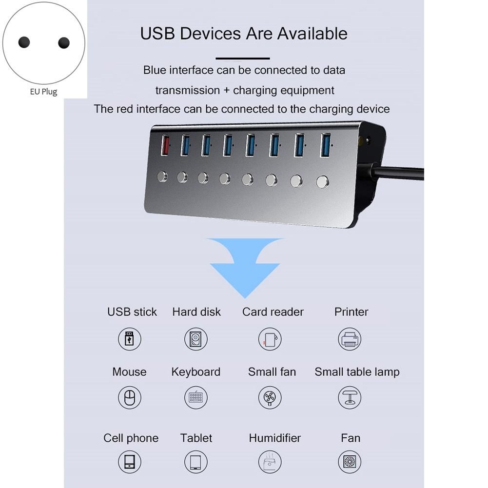3.Designed with 8-port,7 port USB 3.0 HUB,1 port fast charge;
