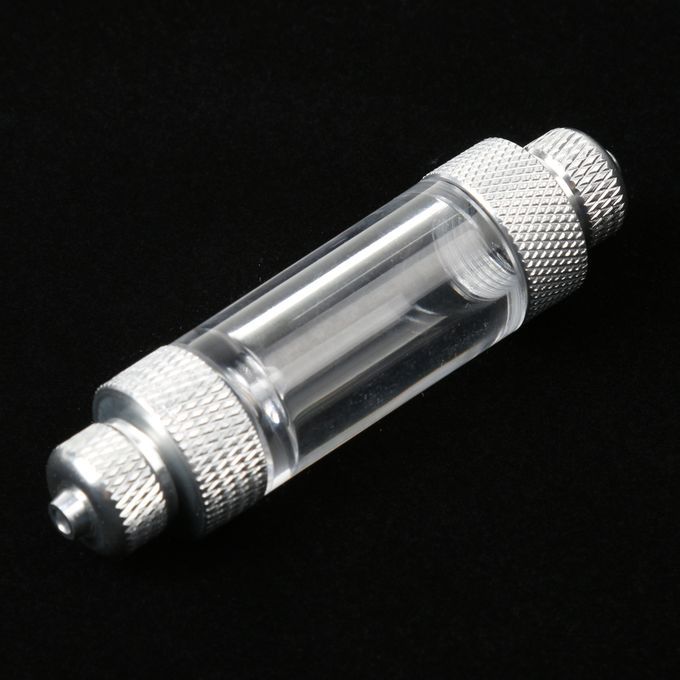Aluminium Aquarium Inline CO2 Bubble Counter with build in check valve. When the regulator is open, you will be able to calculate your CO2 injection rate by counting how many bubbles pass through the counter per minute, with the piece of mind that your equipment is protected in the event of water siphoning back towards your equipment.