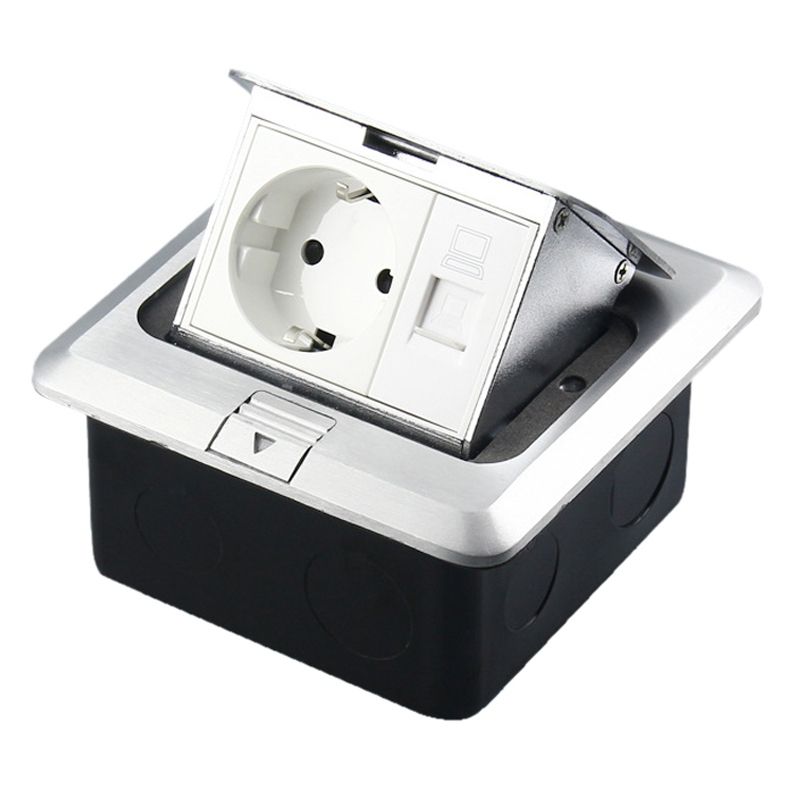 Aluminum Alloy Computer Floor Socket with Cover Bottom Box, EU Plug
