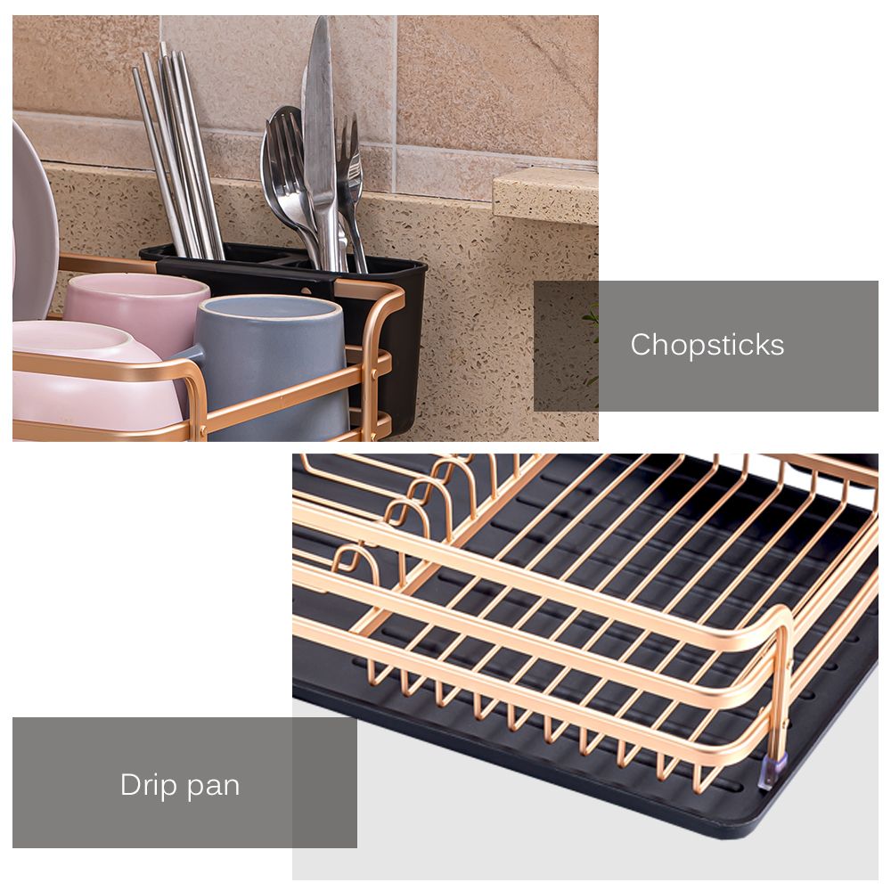 This dish rack is specially designed for kitchen use, suitable for your countertop to receive dishes, knives, forks, chopsticks and so on to keep your kitchen clean and uncluttered.