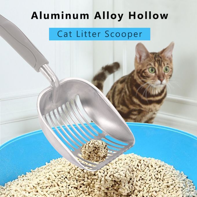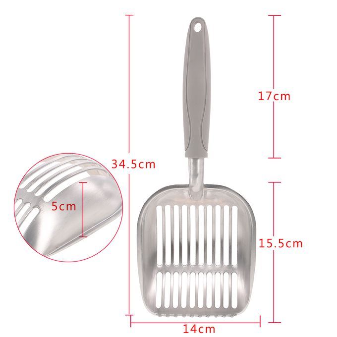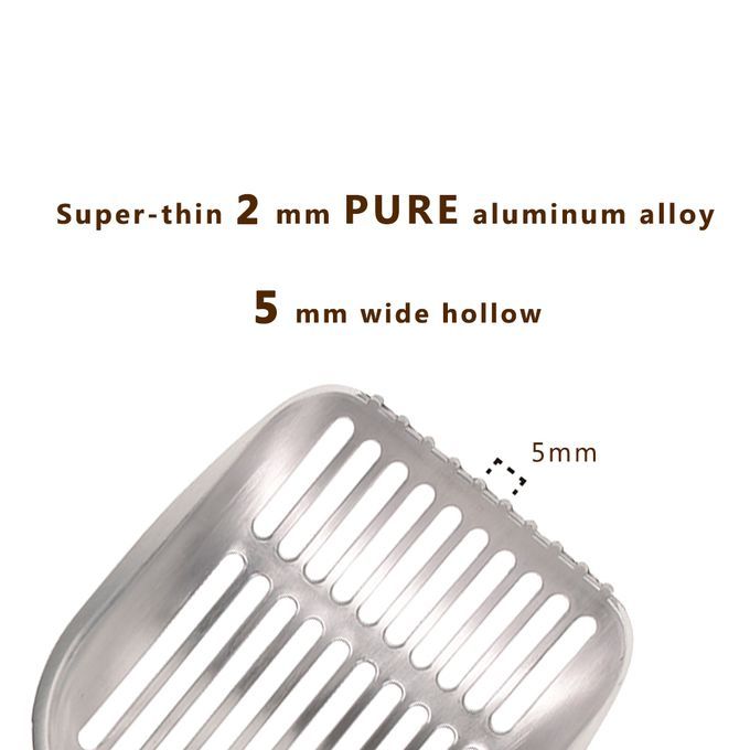 As a cat owner, it is a must for you to have a solid and versatile scooper to clean your kitty's little litter box. Made of sturdy aluminum alloy, our sifter is light-weight and heavy-duty, and the ergonomic holder helps you remove more waste matter with less mess. With anti-scatter sides & perfect scooper spacing, you can sift cat litter easily without too much effort, which gives you more time to cuddle with your favorite furry family member.
