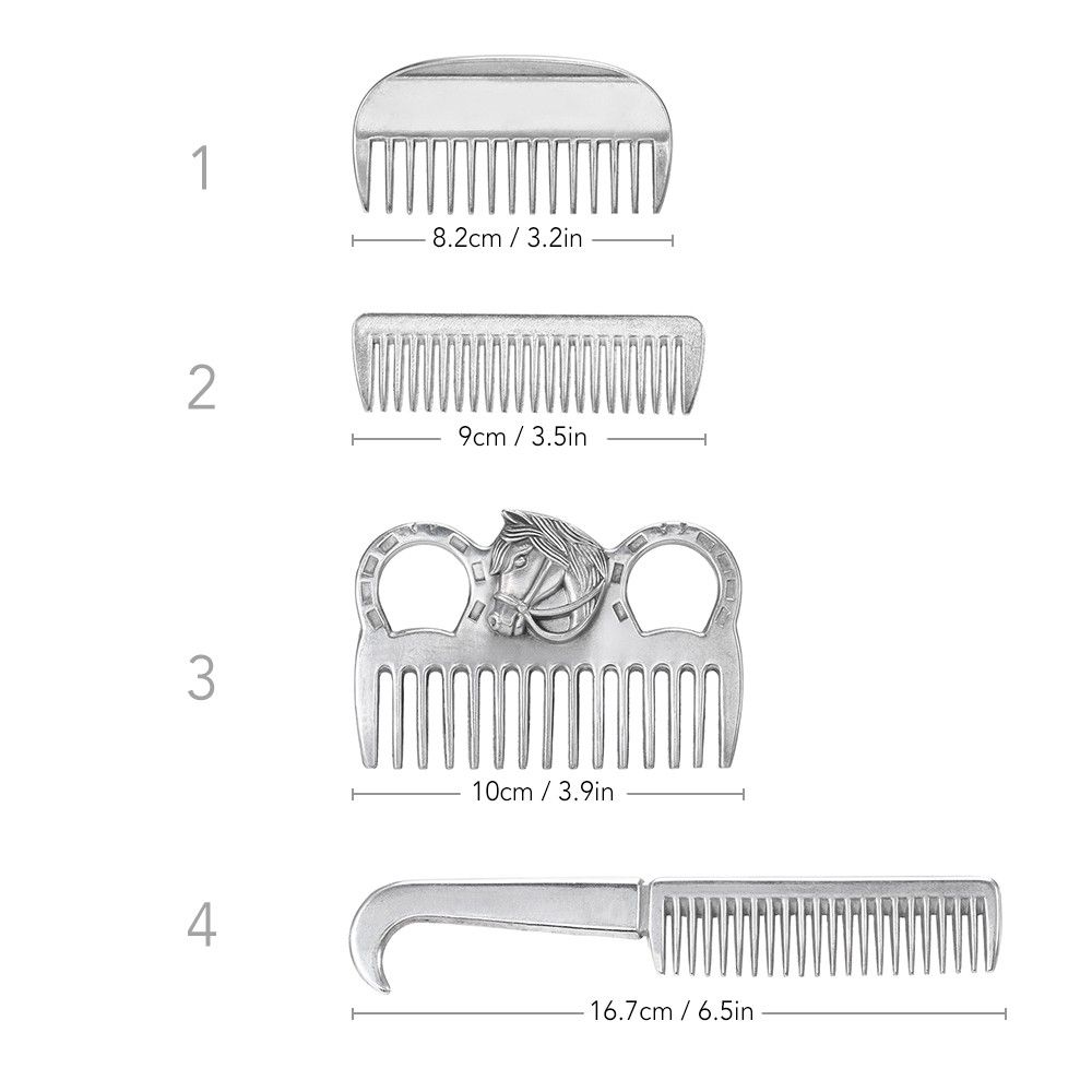 Superior aluminum constructed, thickened tooth for great durability and small size for easy fit in your horse grooming tool box. Perfect knots remover of manes and tail, and also suitable for pet dogs, cats and animal with fur.