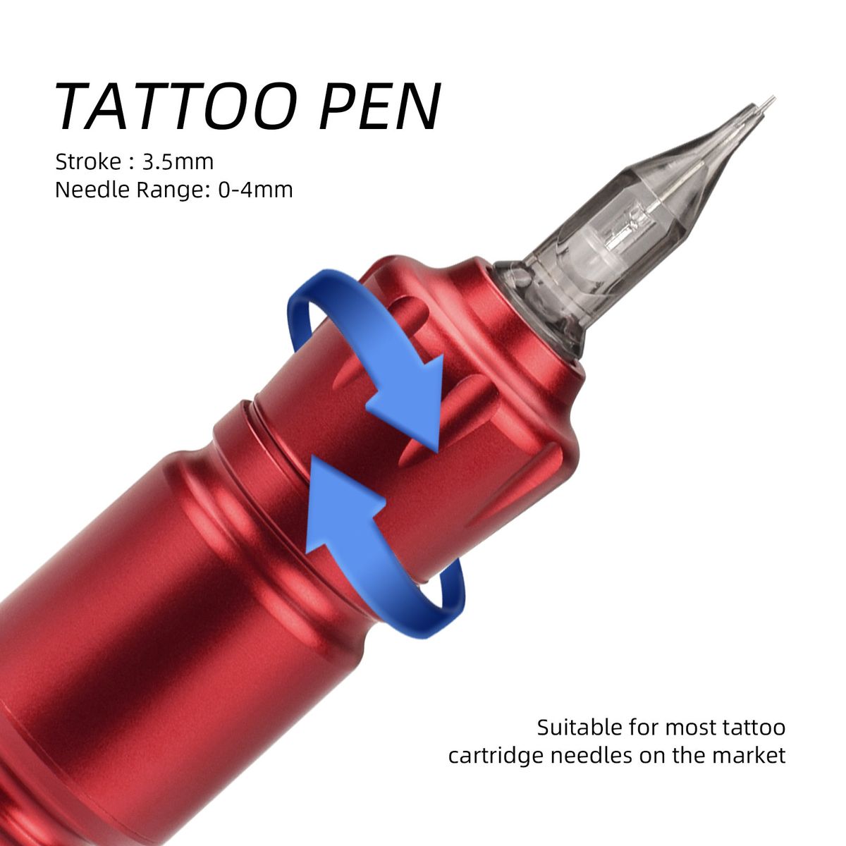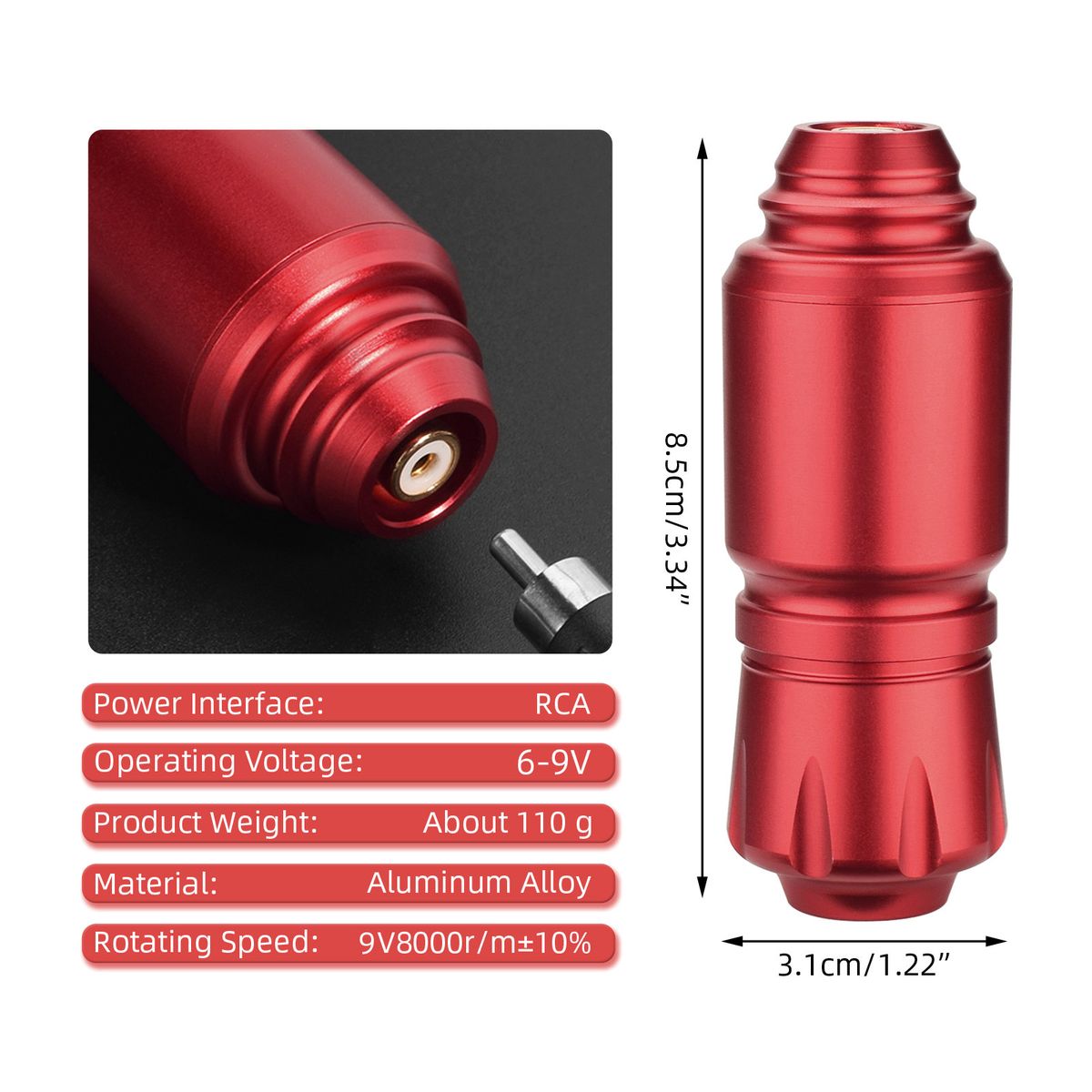 Ergonomic design, lightweight pen-style machine, comfortable to hold, nice for precise tattooing. Adopts aluminum alloy material, durable to use.