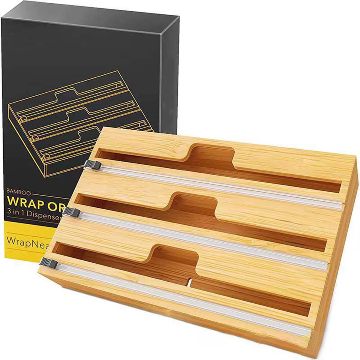 Aluminum Foil Dispenser Wood Cling Wrap With Slide Smoothly Cutter Reusable Fresh-keeping Box Storage Organizer Kitchen Tools