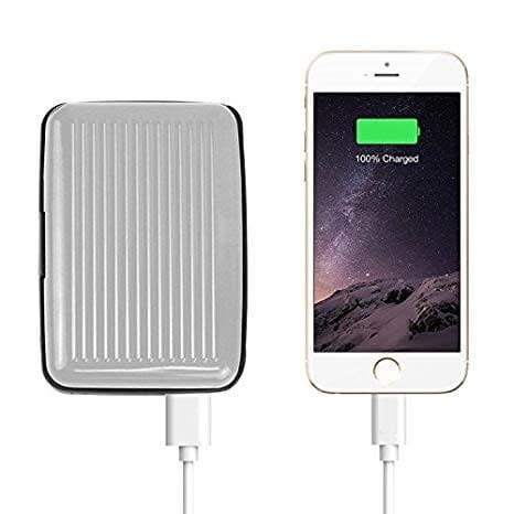 Buy Aluminum Rfid Blocking Power Bank Charging Phone & E Charge Metal Leather Wallet - Black in Nigeria