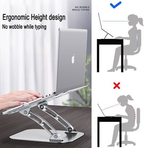 - Ergonomic Design The laptop raiser stand offers all the variations on viewing angles without concern for slippage or unbalancing. The adjustable laptop stand is not just created to hold a laptop but is also designed to be effective in improving sitting posture to less back/neck stiffness associated with long-term sitting.