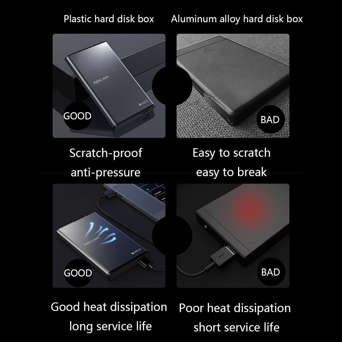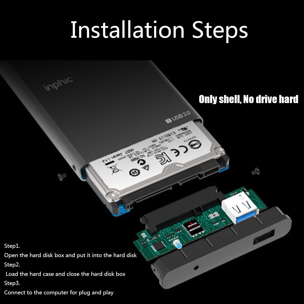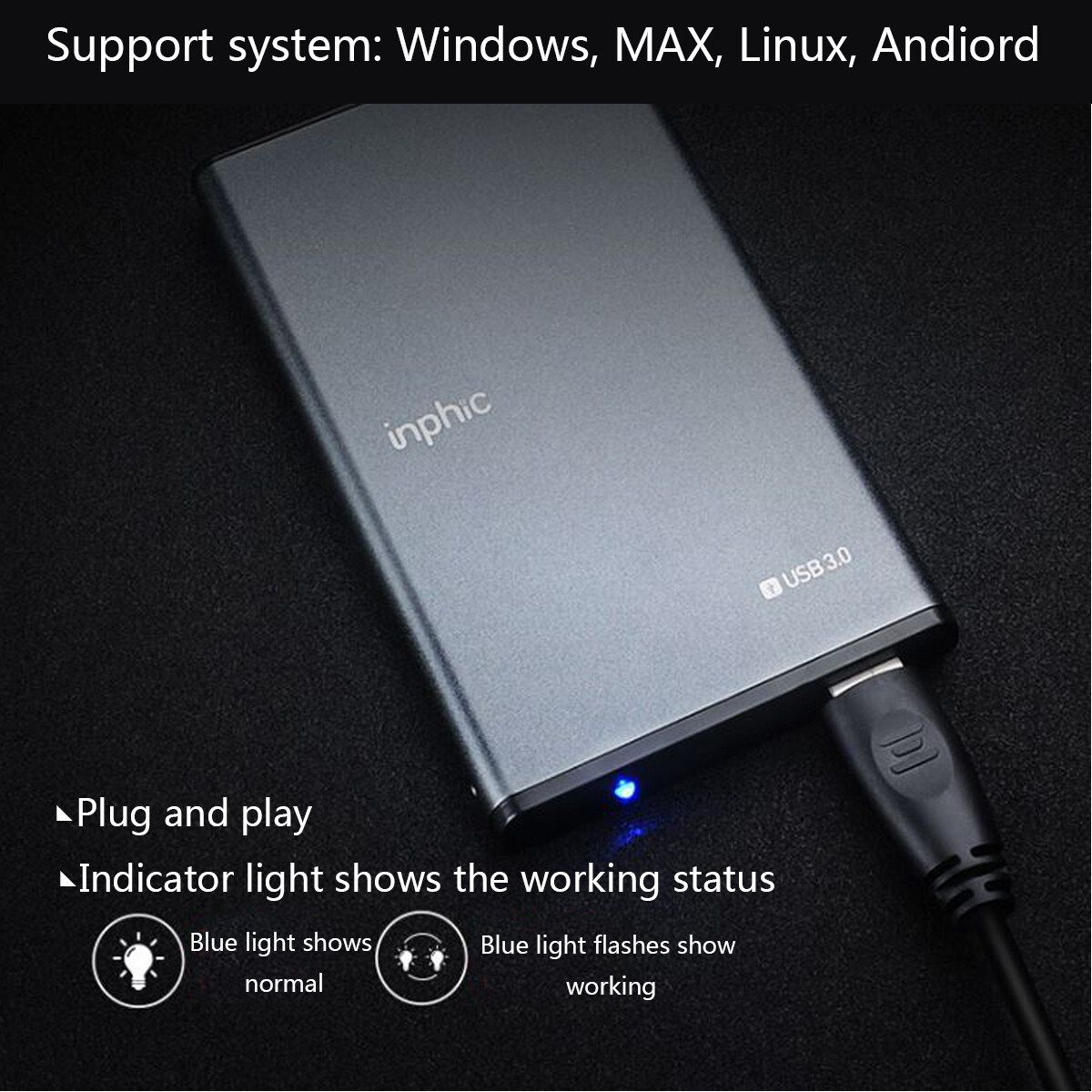 Feature: - Type- aluminum mobile hard disk box USB3.0 to Type- interface SATA serial hard disk box 2.5 inches - New aluminum alloy casing for durability. - The indicator light the working status. - for 2.5" SATA I / II / III HDD / SSD (up to 8TB). - SuperSpeed USB 3.0 interface with transfer rates up to 5 Gbps. - Plug and play, hot swap and hot swap make the device easy to use. - The aluminum alloy has good heat dissipation, ensuring continuous and stable operation of the hard disk. - Fully compatible with USB 3.0, backward compatible with USB 2.0, USB 1.1. - USB powered, no external supply required. - This chassis is the ideal solution for data transfer or data backup. system: Windows, , Linux, Andiord. Specification: - Material: aluminum alloy casing - Colour: Black - for 2.5" SATA I / II / III HDD / SSD (maximum 8TB) - USB 3.0 data cable, length: 40 cm / 15.7 inches - Product size: approx. 127 * 76* 14mm / 5.0 * 3.0 * 0.51" Package Included: 1 X external cabinet 1 X USB3.0 data cable 1 X User Manual (English) Note: 1. Please allow a difference of 0.5-1cm due to manual measurement. 2. Due to differences in light and screen, the of the item may be slightly different from the picture.
