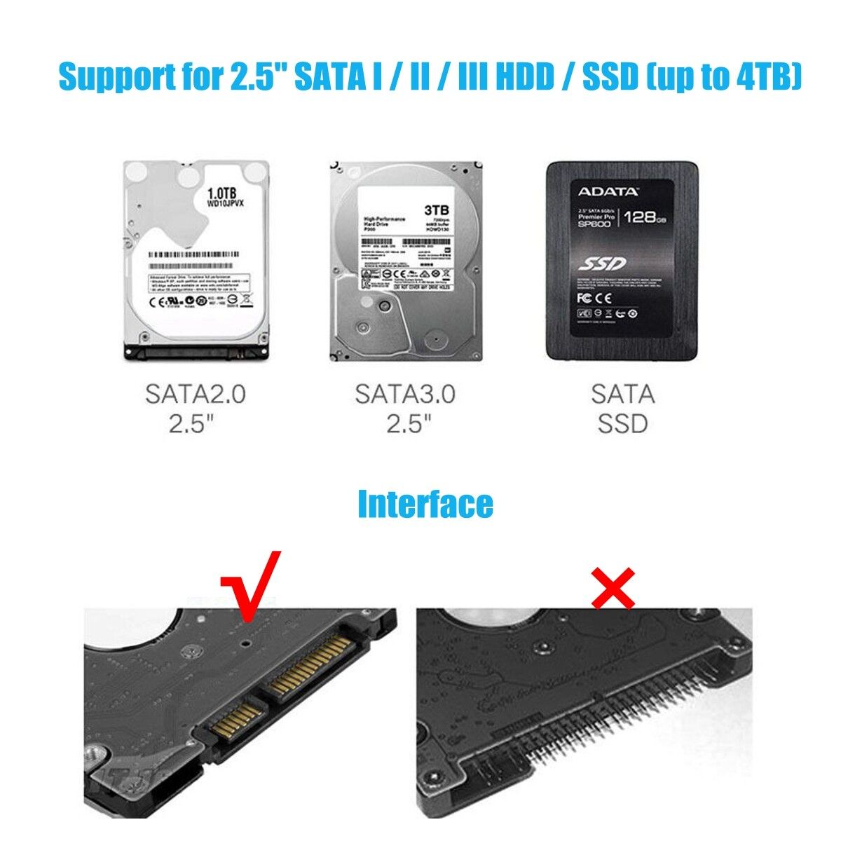 - for 2.5" SATA I / II / III HDD / SSD (maximum 8TB)