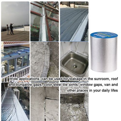 tank, it's suitable for various liquid including freshwater,sea water, rain water, gasoline, it's made of high polymer, synthetic butyl rubber with extremely strong adhesion suitable for various surfaces Resistance in high pressureAfter testing, it can effectively resist the pressure of 3bar High and amp:low temperature resistanceCapable of withstanding up to 120 degree Celsius and maintaining viscosity at low temperature of -40 degree Celsius Flame retardant, fire resistance corrosion resistant, uv-resistance pure aluminum surface can effectively flame retardant and anti- corrosion the smooth pure aluminum film has better sun protection and Colling effect the mail ingredient is synthesized from natural rubber which can be degraded by micro organism in the natural environment and has no pollution in the environment .multi functional tape, easy to use repair wall crack and