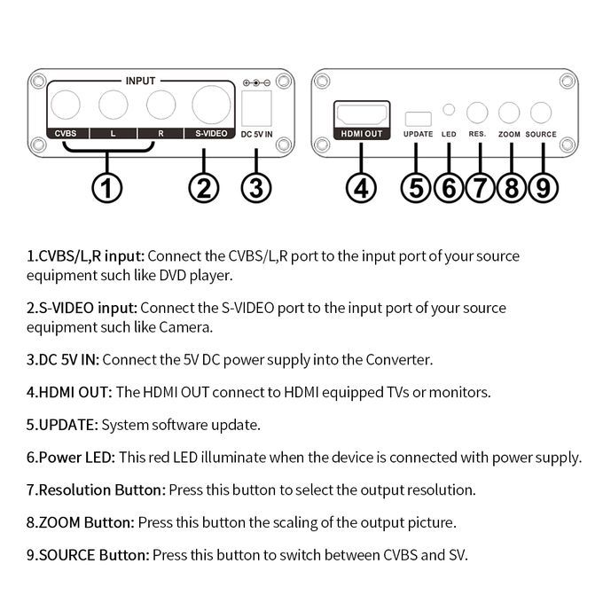 AM-9615 AV/SV to HDMI Converter Switch 4K*2K Scaler Converter Box for HDTV Video Scaling Adapter US Plug
