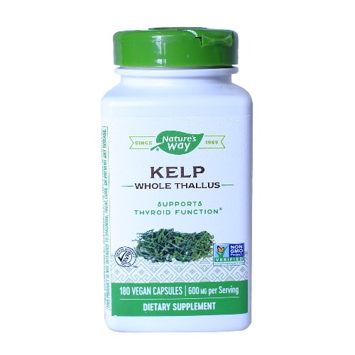 Kelp is a type of marine algae, or seaweed, that & rsquo;s brown in color and grows in coastal ocean waters. Popular in Japanese cuisine, kelp can be eaten raw and is often incorporated into sushi, soups and salads. Kelp is also dried, powdered and used as a salt substitute or in dietary supplements.Nature's Way uses whole dried plant guaranteed to contain 0.06% iodine.