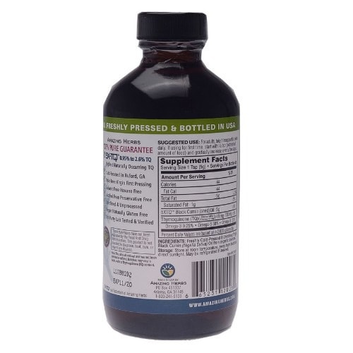 Amazing Herbs Premium Black Seed Oil (Black Cumin) is freshly cold-pressed (virgin-first-pressing) using only the highest quality NON-GMO and organically sourced Nigella Sativa seeds and is Guaranteed 100% Pure, Solvent-Free and Non-Refined.
