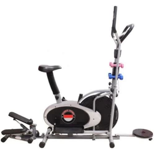 Multi Function Recumbent Elliptical with seat & back Support - 4 handle is very strong, original and durable brand new imported Multi-Orbitrac Elliptical Cardio CyScling Exercise Bike .It comes with a Waist Twister, Mini-Stepper, 4 handles,. Use this exercise bike for 20 minutes per day work-out for 30 days and experience a reduction of about 2kg or more. Its a combination of twister, stepper, dumbbells with dual action handle bars, combine cycling with rowing action.The mini-stepper allows you to simulate the motions of climbing stairs, walking up hills and similar forms of cardiovascular exercise while the waist twister aids in building core strength around your he spine, hips, abdomen and and it also helps in maintaining balance. This product is essentiall for loosing weight and burning of calories. Good for building leg muscles, arm muscles and heart muscles. It also has an LCD screen showing: Pulse, Calorie count, Time, Speed, Heart rate Monitor, Distance. It has a cone bearings and 1 piece crank shaft,wind wheel dia 490mm. It also consists of adjustable tension straps with tension knobs and adjustable seat. User's max weight is 120kg.