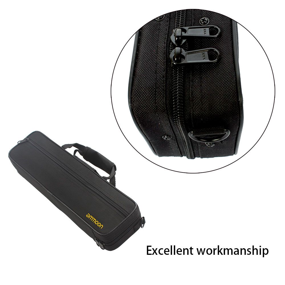 ammoon 16 Holes C Flute Case Gig Bag Backpack Box Water-resistant 600D Foam Cotton Padding with Adjustable Single Shoulder Strap