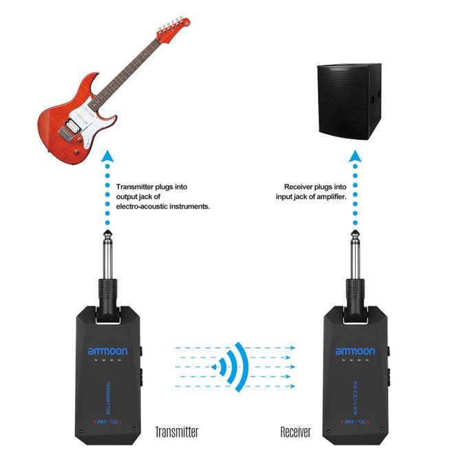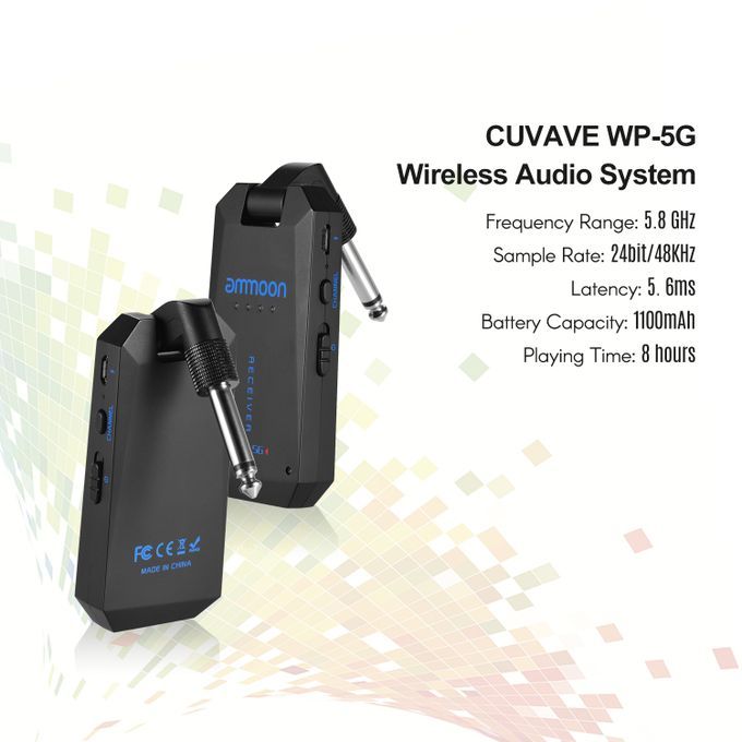 WP-5G wireless audio transmission system is designed for electronic instruments wireless connection. This product features low noise, low latency, high resolution, and long transmission. Just enjoy yourself with the wireless system.