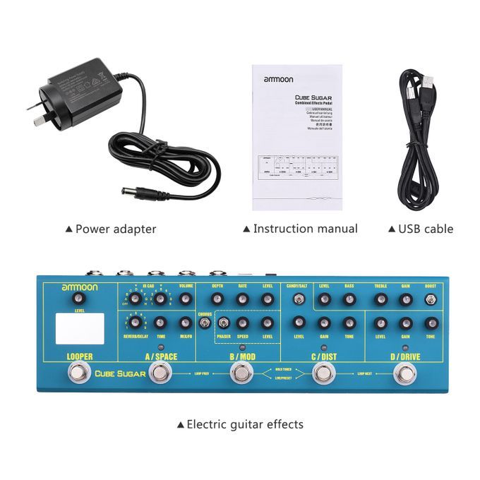 1 x Effect Pedal,1 x USB Cable,1 x Adapter,1 x User Manual(English & French & German & Italian & Spanish & Japanese)