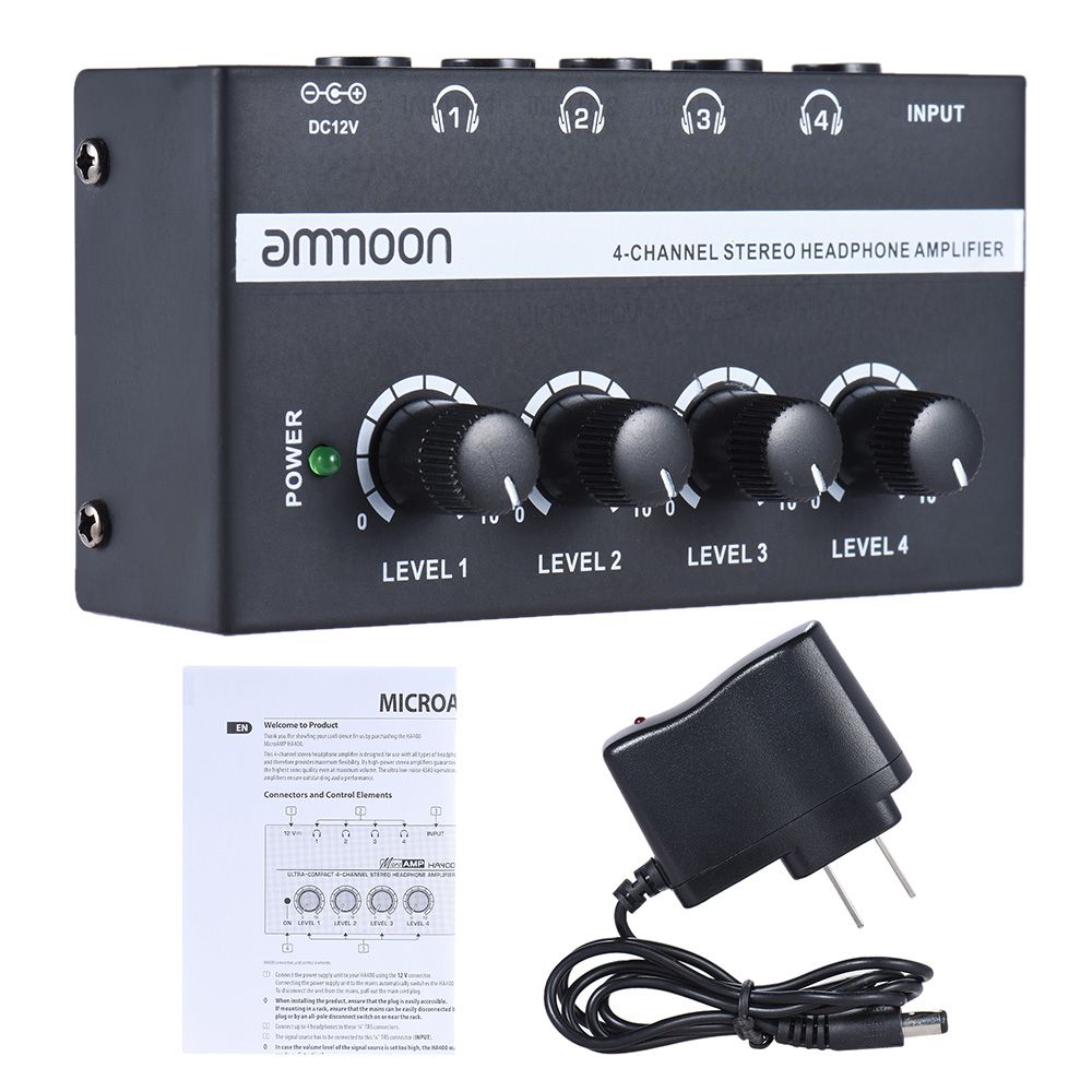 This 4 channel stereo headphone amplifier is designed for all types of headphones, it allows 4 people listener simultaneously and setting volume independently, its high- stereo amplifier ensures highest sonic quality even at max. volume, ultra low noise 4580 operational amplifiers provides you outstanding audio performance.