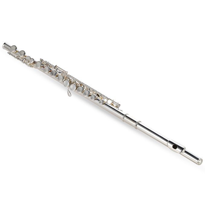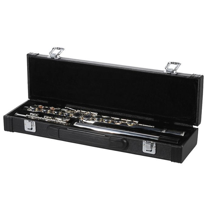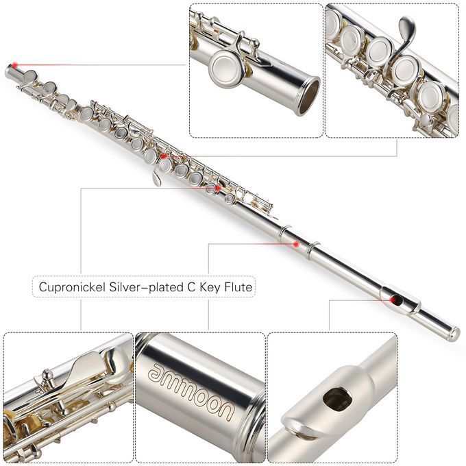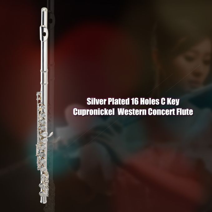 Cupronickel silver plated C key flute with 16 closed holes.