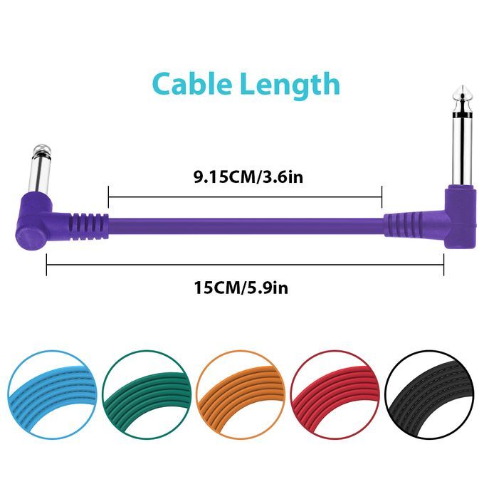 Effect pedal cables with low capacitance and top-quality construction for purest signal transmission and longest service life, 15cm long, pack of 6pcs.