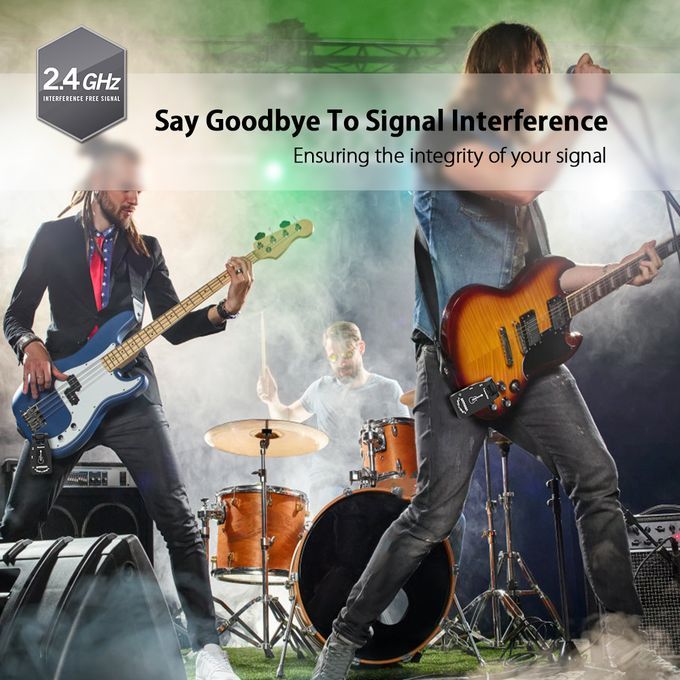 ammoon 2.4G wireless guitar system with rechargeable transmitter and receiver, is available for most electric musical instruments, such as electric guitars, bass, electric-acoustic guitars, etc. 20-20KHz wide frequency response, 24bit/ 48KHz uncompressed signal transmission and without the trouble of long connection cables, you can enjoy your guitar tone in amazing and excellent details on your guitar amplifier with our ammoon 2.4G wireless guitar system anytime anywhere.